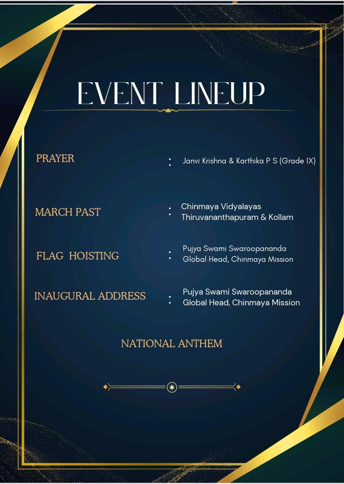 - Annual academic calendar